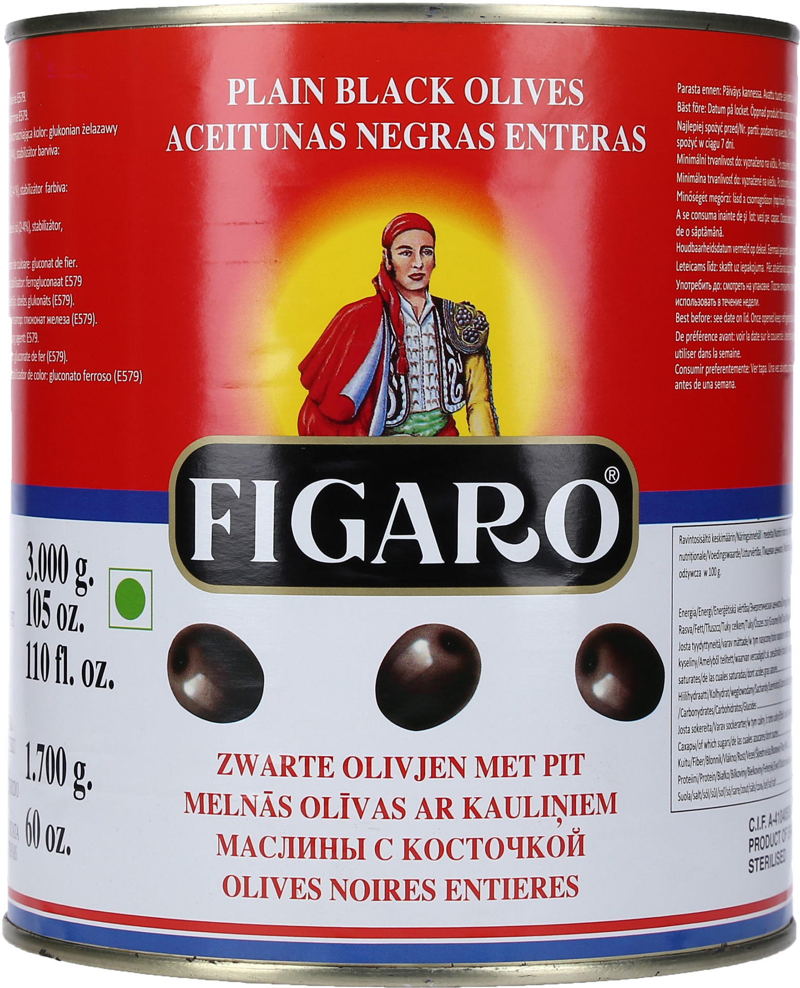 ACEITUNAS NEGRAS ENTERA FIGARO 6/105 OZ.